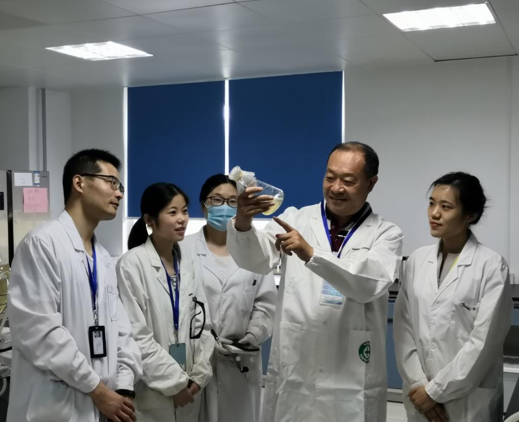This photo taken in September 2023 shows Gao Wenyuan (2nd R), a professor at the School of Pharmaceutical Science and Technology, Tianjin University, leads his team to conduct a research at a lab in north China's Tianjin Municipality. (Xinhua)