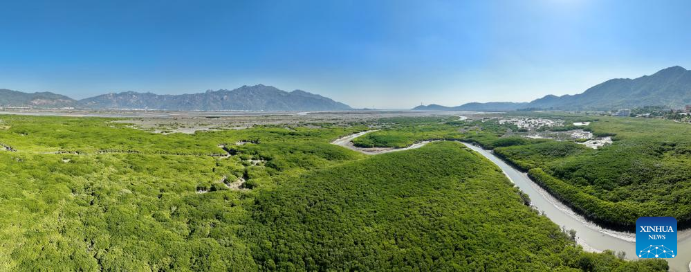 An aerial drone panorama taken on Jan. 4, 2025 shows a view of the Zhangjiangkou National Mangrove Nature Reserve in Yunxiao County, southeast China's Fujian Province. Located in the estuary of the Zhangjiang river, the Zhangjiangkou National Mangrove Nature Reserve covers an area of 2,360 hectares. It was listed as one of the Wetlands of International Importance under the Ramsar Convention on Wetlands in 2008. (Xinhua/Lin Shanchuan)