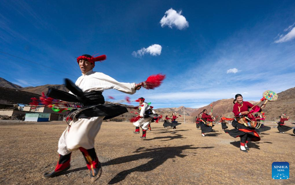 People perform Reba Dance in Chido Township, Dengqen County, Qamdo, southwest China's Xizang Autonomous Region, Jan. 5, 2025. (Xinhua/Tenzin Nyida)
