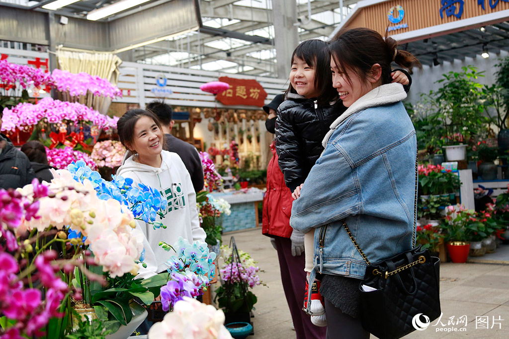 Citizens buy fresh flowers at a flower market in Caozhuang village, Zhongbei township, Xiqing district, north China's Tianjin Municipality, Jan. 30, 2024. (People's Daily Online/Cui Xinyao)