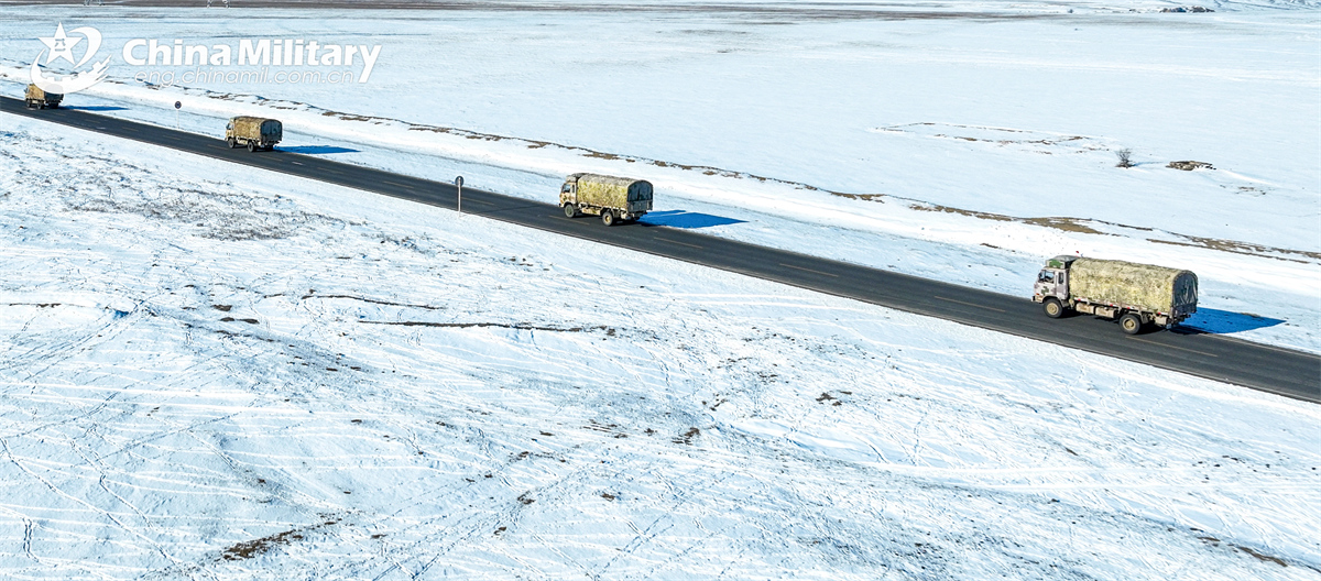 Military trucks attached to a unit under the Chinese PLA Xinjiang Military Command move towards the designated area during a driving training exercise on November 27, 2024. (eng.chinamil.com.cn/Photo by Li Feng)