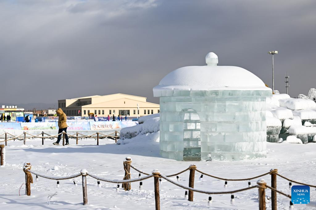Tourists visit an ice and snow park by the Daheihe River in Hohhot, north China's Inner Mongolia Autonomous Region, Jan. 7, 2025. (Xinhua/Li Zhipeng)