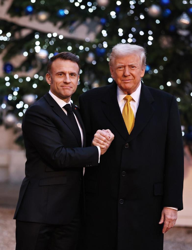 French President Emmanuel Macron (L) meets with U.S. President-elect Donald Trump at the Elysee Palace in Paris, France, Dec. 7, 2024. (Xinhua/Gao Jing)