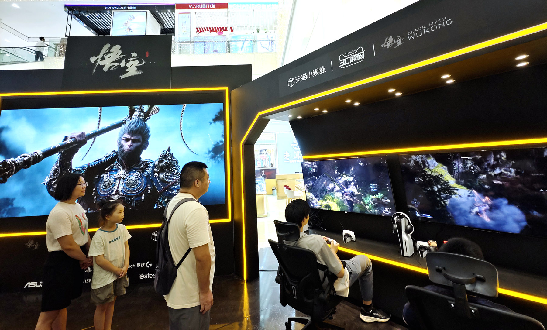 People watch a gamer try "Black Myth: Wukong" at a shopping mall in Wuhan, Hubei Province, on Aug 22, 2024. (Photo/China Daily)