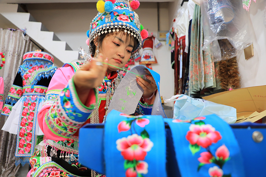 Li Jie, a skilled embroiderer from southwest China's Yunnan Province, infuses intangible cultural heritage items such as traditional embroidery and silver ornaments with modern fashion elements, creating ethnic costumes that captivate consumers and breathe new life into traditional clothing.
