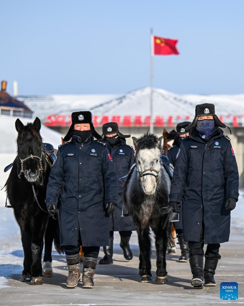 Mounted police patrol in Xilin Gol League, north China's Inner Mongolia Autonomous Region, Jan. 8, 2025. (Xinhua/Lian Zhen)
