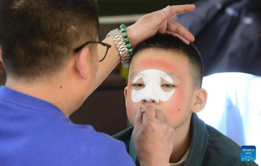 Intangible cultural heritage inheritor promotes Peking Opera facial makeup painting