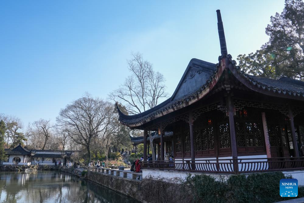 Tourists visit the Humble Administrator's Garden in Suzhou, east China's Jiangsu Province, Jan. 9, 2025. The Humble Administrator's Garden was inscribed in the list of World Cultural Heritage by the UNESCO in 1997. (Xinhua/Li Bo)