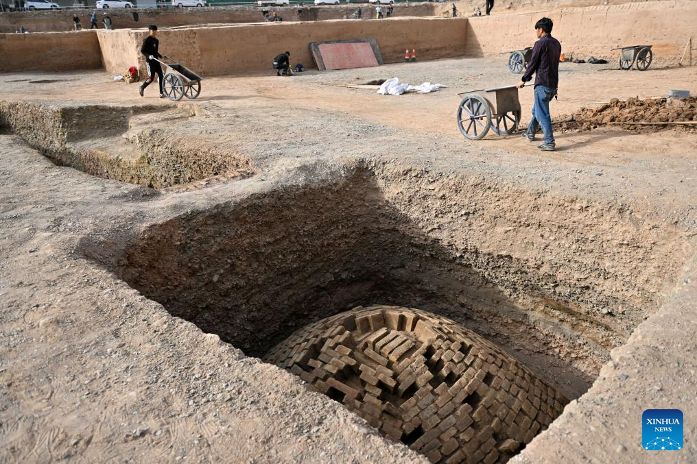 This file photo taken on Oct. 18, 2023 shows the excavation site of the Youyi Road cemetery in the city of Kuqa, northwest China's Xinjiang Uygur Autonomous Region. (Xinhua/Ding Lei)