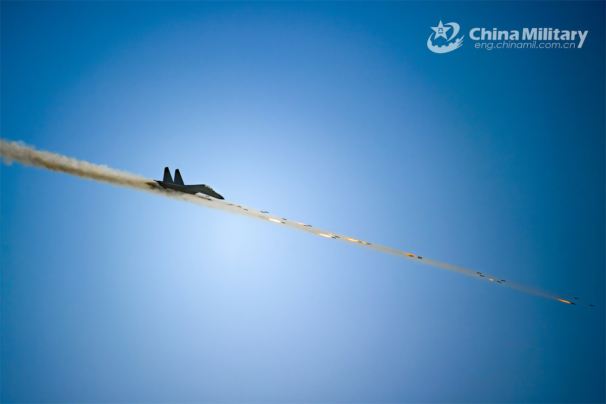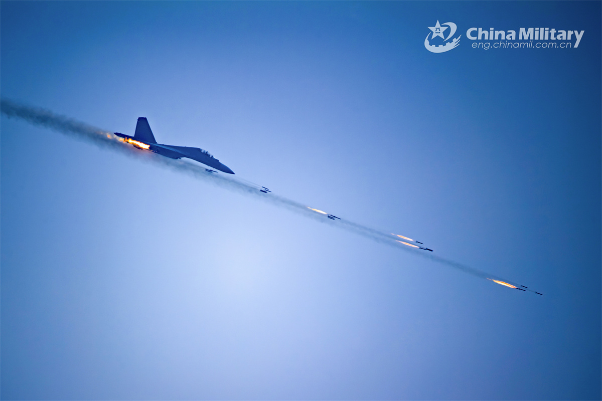 A J-16 multi-role fighter jet attached to an aviation regiment under the Chinese PLA Air Force fires at simulated target during a live-fire training exercise on December 12, 2024. (eng.chinamil.com.cn/Photo by Xu Chengcheng)