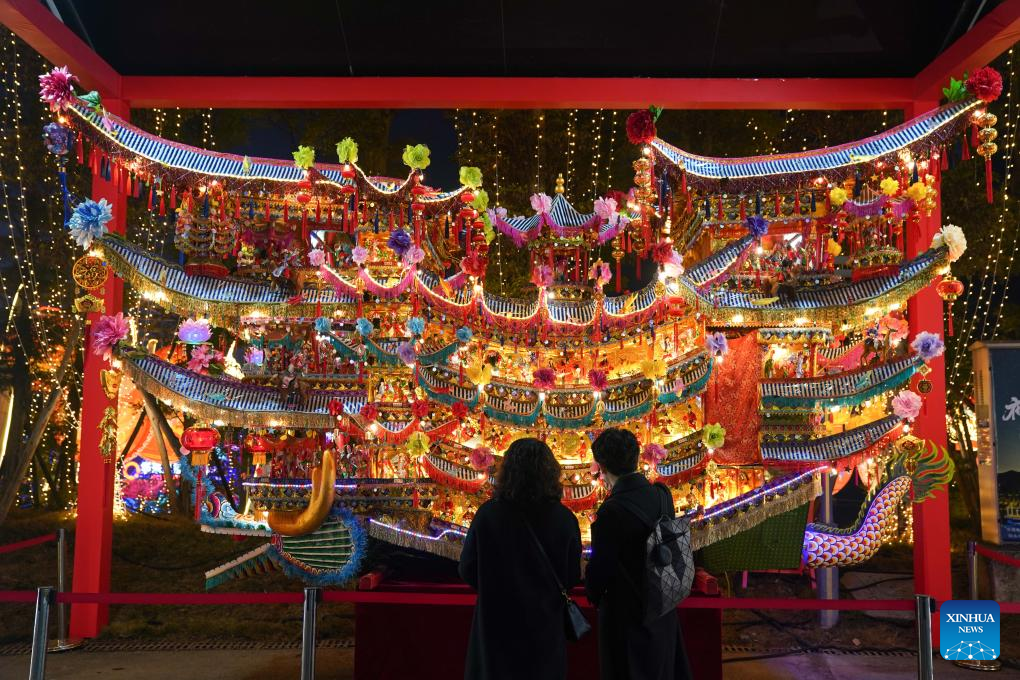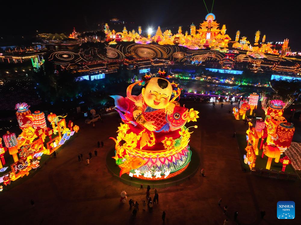 Lanterns are seen during the 31st Zigong International Dinosaur Lantern Show in Zigong, southwest China's Sichuan Province, Jan. 17, 2025. The 31st Zigong International Dinosaur Lantern Show kicked off here on Friday. This year's lantern show features 12 groups of super-large light sets, seven groups of large light sets and more than 200 groups of small and medium-sized light sets. The scale of the lantern displays has set a new record in the history of the Zigong International Dinosaur Lantern Show. (Xinhua/Xu Bingjie)