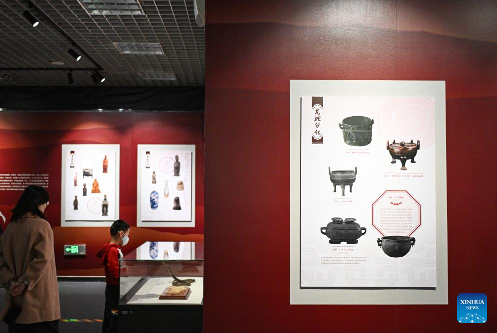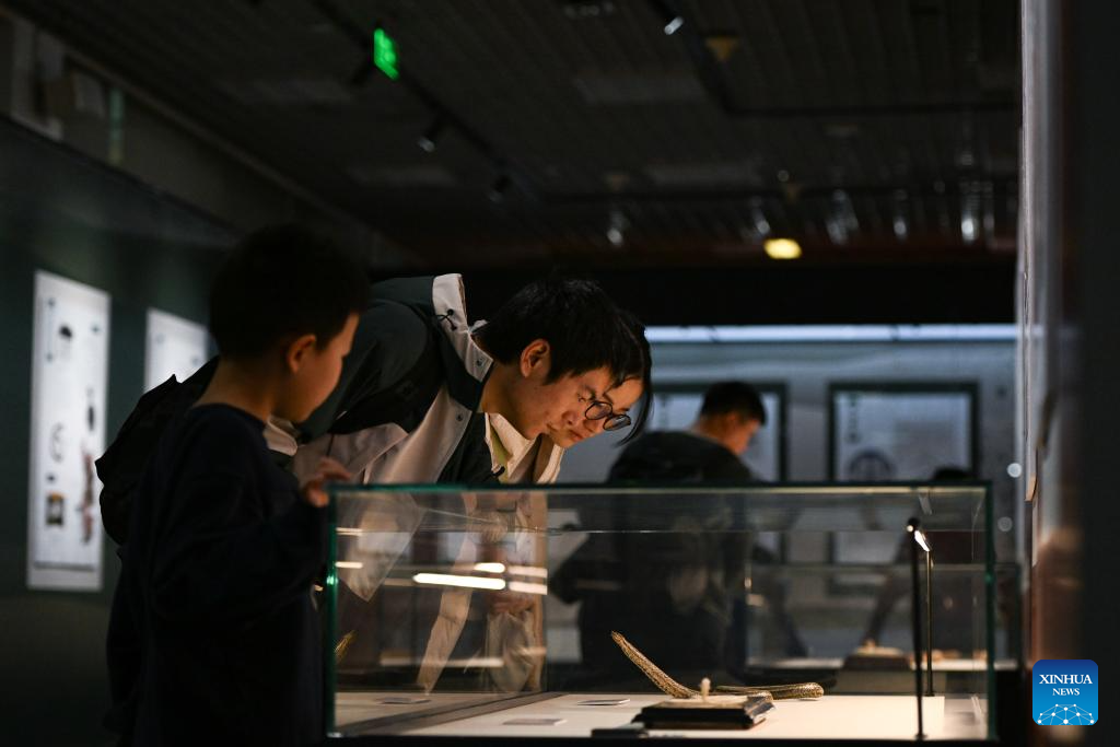 Visitors view exhibits at a Chinese zodiac cultural relics joint exhibition for the 2025 Year of the Snake held at the Natural History Museum of China in Beijing, China, Jan. 18, 2025. Some 50 snake specimens and a large number of snake-related cultural relics, handicrafts as well as exhibition panels were on display during the exhibition, showcasing the diverse images and meanings of snakes in the Chinese culture. (Xinhua/Chen Zhonghao)