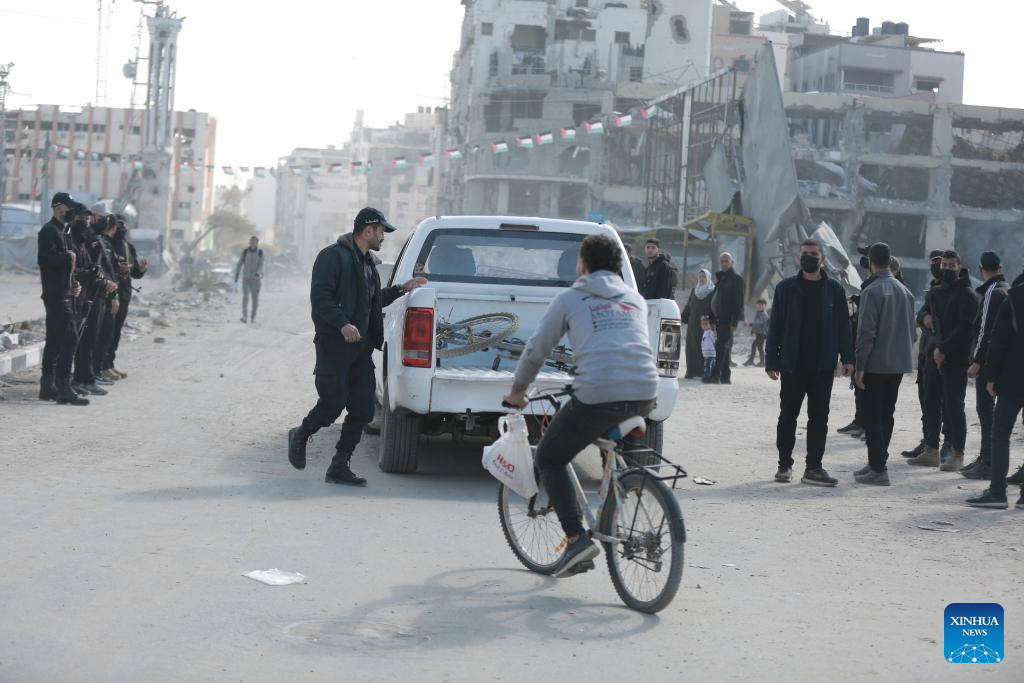 GAZA, Jan. 18 (Xinhua) -- Gaza's Hamas-run interior ministry said Saturday in a statement that its security forces will begin deploying across the Gaza Strip as soon as the ceasefire-for-hostage release deal takes effect on Sunday.
