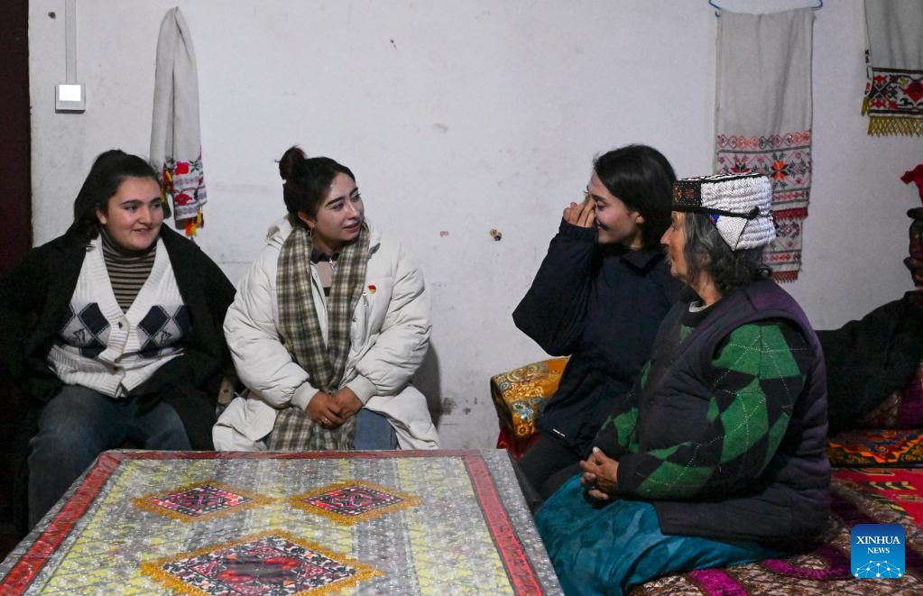 Airkir Duliki (C) packs food that her mother (R) made before leaving home in Xiabuzikla Village of Waqa County, Taxkorgan Tajik Autonomous County, northwest China's Xinjiang Uygur Autonomous Region, Jan. 3, 2025. (Xinhua/Hu Huhu)