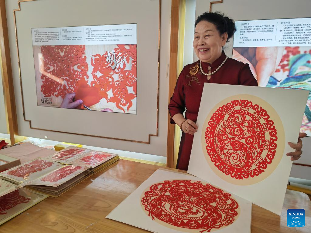 When she spoke with Xinhua, she completed a snake paper cutting in celebration of the upcoming Year of the Snake, one of the 12 animals of the Chinese zodiac that record the years and reflect people's attributes.
