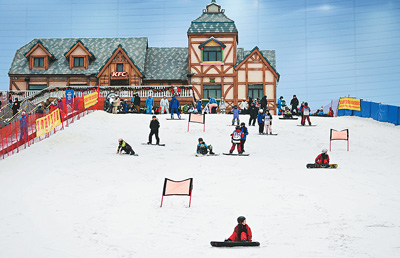 Tourists enjoy skiing at an indoor skiing venue in Guangzhou Bonski, an indoor ski resort in Guangzhou, south China's Guangdong Province. (Xinhua/Deng Hua)