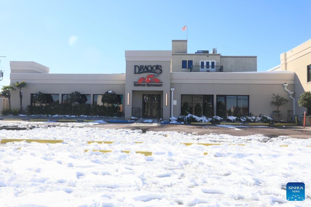 A restaurant remains closed after a winter storm in New Orleans, Louisiana, the United States, on Jan. 22, 2025. A rare winter storm, known as Enzo, has swept through the southern U.S. with record-breaking snow and bitterly cold weather to typically mild regions along the Gulf Coast, claiming at least nine lives as of Wednesday morning. New Orleans, the biggest city in coastal state Louisiana, on Tuesday experienced its heaviest snowfall since 1948, with 8 inches falling in a single day, far surpassing the previous record of 2.7 inches, according to a report from the weather.com on Wednesday. (Photo by Lan Wei/Xinhua)