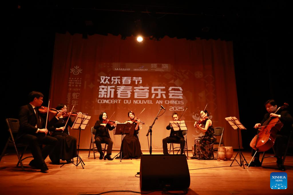Chinese musicians perform during a concert to celebrate the upcoming Chinese Spring Festival in Rabat, Morocco, Jan. 15, 2025. (Xinhua/Huo Jing)