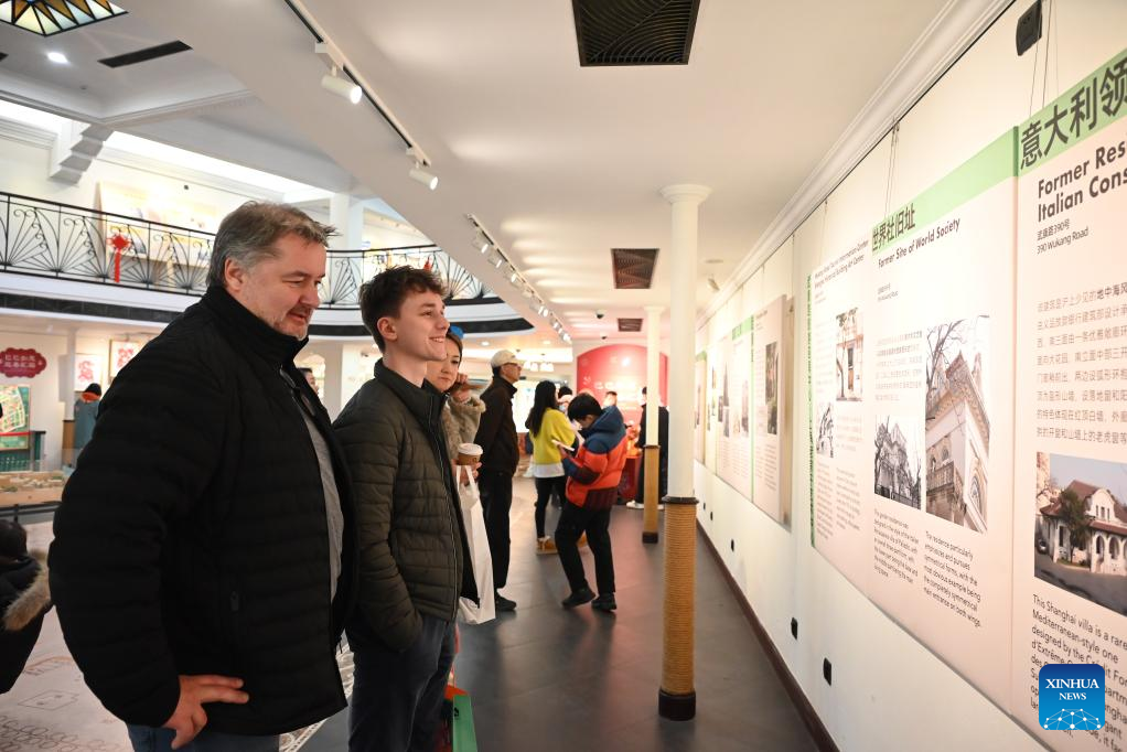 Tourists from Germany visit an exhibition at Wukang Road Tourist Information Center in Xuhui District of east China's Shanghai, Jan. 21, 2025. According to Shanghai Municipal Administration of Culture and Tourism, Shanghai received approximately 6.7 million inbound trips in 2024, up 84 percent year-on-year. (Xinhua/Chen Aiping)