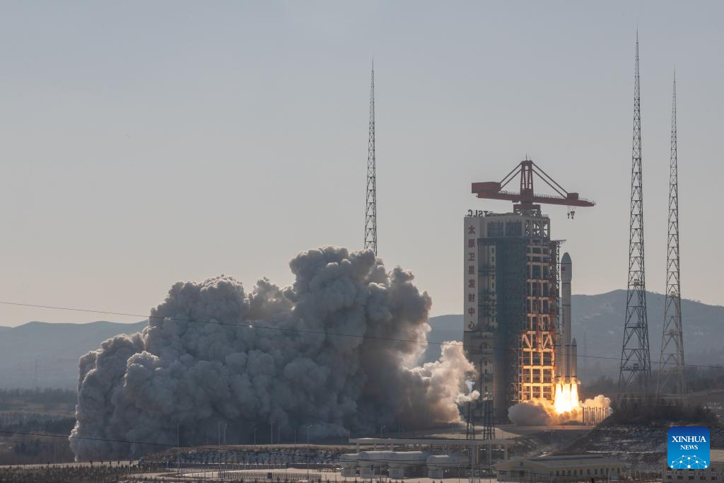 A satellite group is launched aboard a modified Long March-6 carrier rocket from the Taiyuan Satellite Launch Center in north China's Shanxi Province, Jan. 23, 2025. The satellite group, which is the sixth batch that will constitute the Spacesail Constellation, was launched at 1:15 p.m. (Beijing Time) and entered its preset orbit successfully. (Photo by Zheng Taotao/Xinhua)