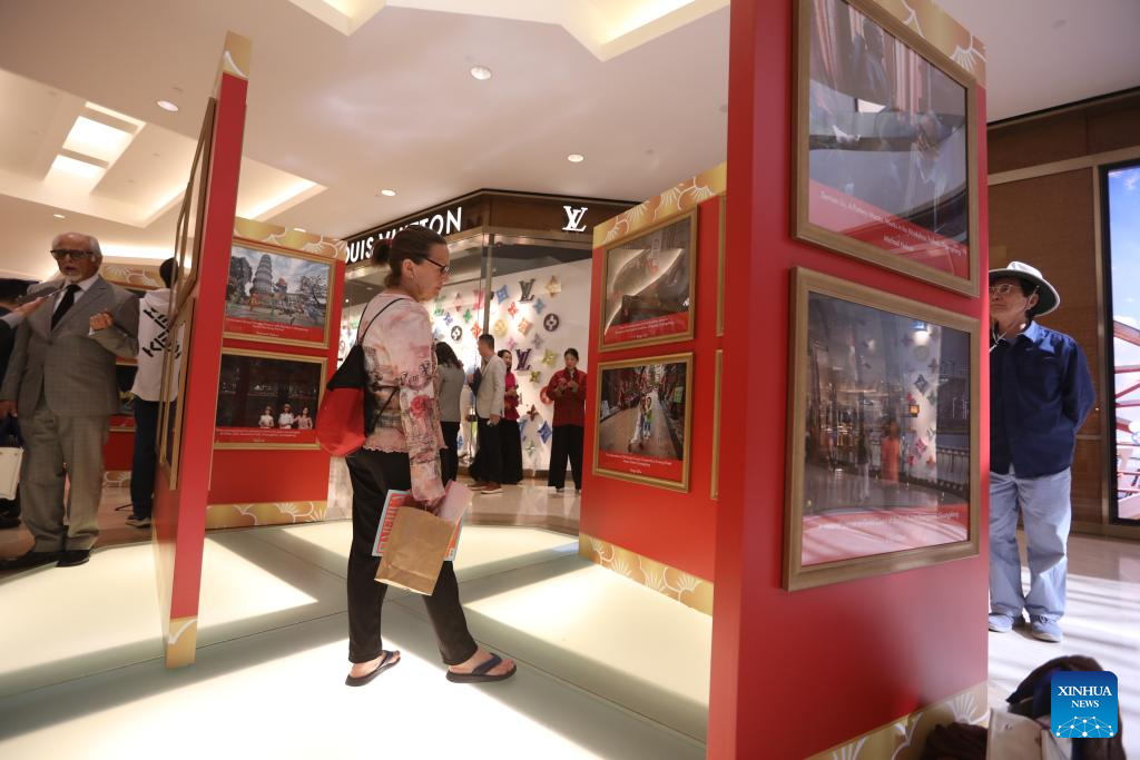 People visit a photo exhibition titled "Nihao, China! See You in Guangdong-A Cultural Exploration by Four American Photographers" in Orange County, California, the United States, on Jan. 23, 2025. A photo exhibition was launched in Southern California on Thursday to showcase Chinese culture through the creative lens of award-winning American photographers. (Photo by Qiu Chen/Xinhua)