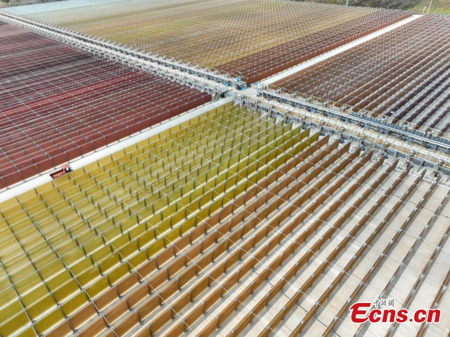 Aerial view of the world's largest astaxanthin production base in Pingbian County, Honghe Prefecture, southwest China's Yunnan Province, Jan. 23, 2025. (China News Service/Liu Ranyang)