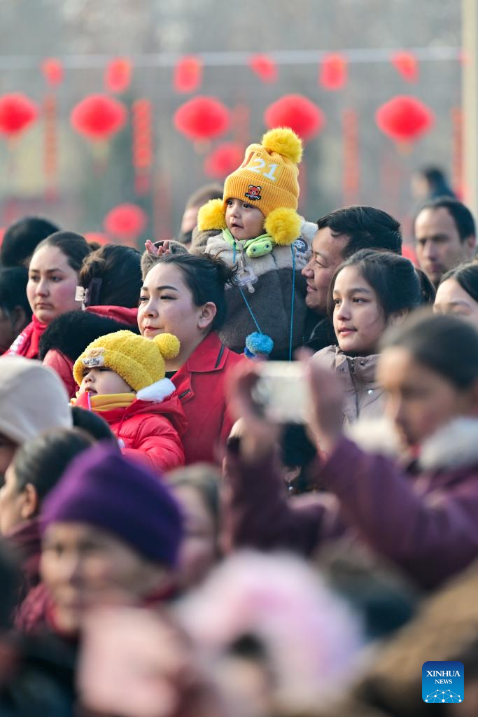 Residents watch performance during a "village gala" in Shache County of Kashgar, northwest China's Xinjiang Uygur Autonomous Region, Jan. 22, 2025.