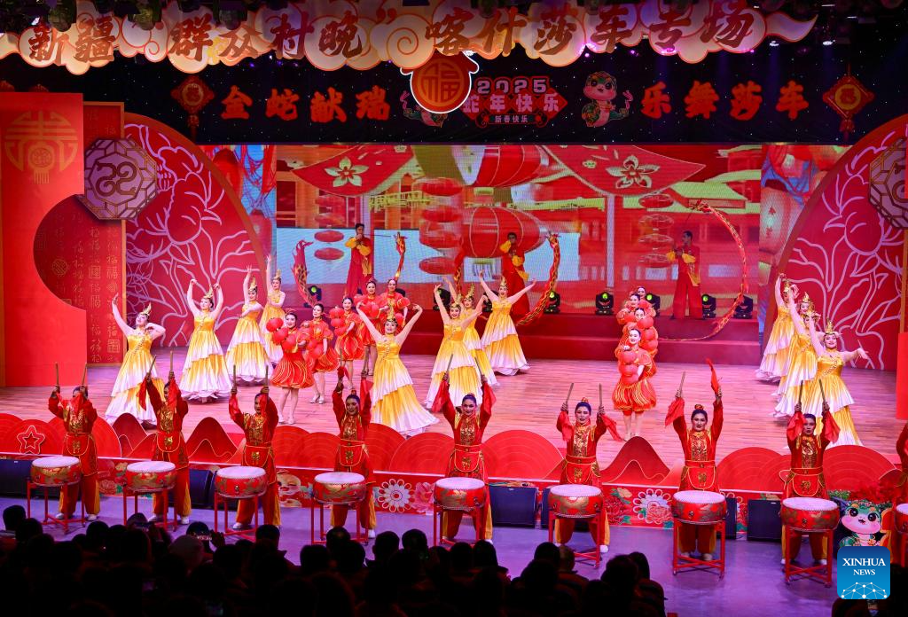 Artists perform during a "village gala" in Shache County of Kashgar, northwest China's Xinjiang Uygur Autonomous Region, Jan. 23, 2025.
