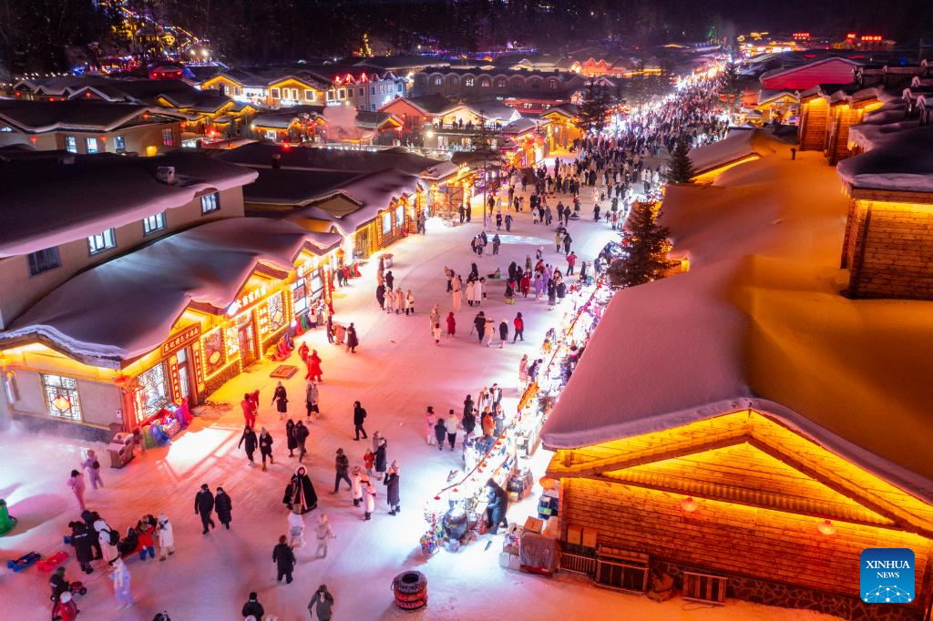 Located in the city of Mudanjiang of Heilongjiang Province, the China's "Snow Town," transformed from a forest farm, rose to fame in recent years thanks to its unique setting and climate. The snow season here can last up to seven months a year. The "Snow Town" has also been upgrading its infrastructure to provide better services for its tourists. As the Chinese New Year is coming, the white snow and red lanterns create a strong Spring Festival vibe, attracting tourists from all over. (Xinhua/Xie Jianfei)