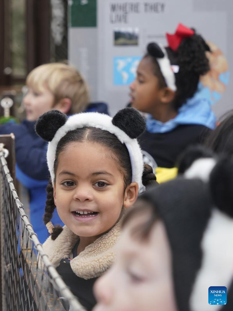 Kids look at the giant pandas at the Smithsonian's National Zoo in Washington, D.C., the United States, Jan. 24, 2025. The giant panda couple, Bao Li and Qing Bao, made their first public appearance on Friday since their arrival at the Smithsonian's National Zoo here. Sent as part of a 10-year international giant panda protection cooperation program, the three-year-old pandas, Bao Li, male, and Qing Bao, female, departed their hometown in Sichuan Province and arrived in the U.S. capital city on Oct. 15, 2024. (Xinhua/Wu Xiaoling)