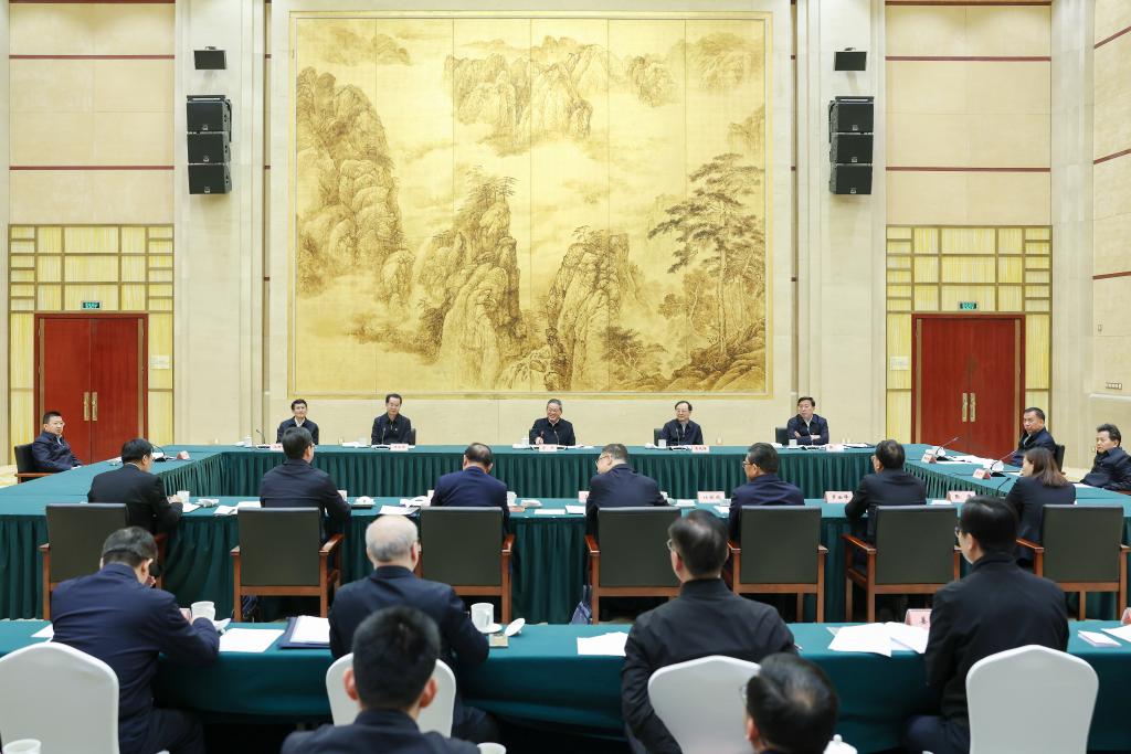 Following the visit to the old revolutionary base area of the Dabie Mountains, Chinese Premier Li Qiang, also a member of the Standing Committee of the Political Bureau of the Communist Party of China (CPC) Central Committee, chairs a symposium and hears officials' opinions and suggestions concerning the government work report and the work of the government, in Hefei, capital of east China's Anhui Province, Jan. 23, 2025. Li Qiang on Wednesday visited the old revolutionary base area of the Dabie Mountains, in east China's Anhui Province, ahead of the Spring Festival, and extended his Spring Festival greetings to primary-level officials and residents during the visit. (Xinhua/Liu Bin)