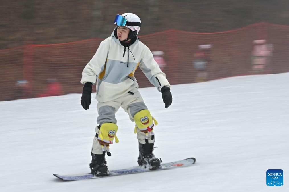 A tourist skis at a ski resort in Shennongjia Forestry District, central China's Hubei Province, Jan. 23, 2025. In recent years, with rich ski resorts and ecotourism resources, Shennongjia Forestry District has witnessed a large number of tourists in winter. The booming tourism has also advanced the development of local "ice and snow economy." (Xinhua/Du Zixuan)