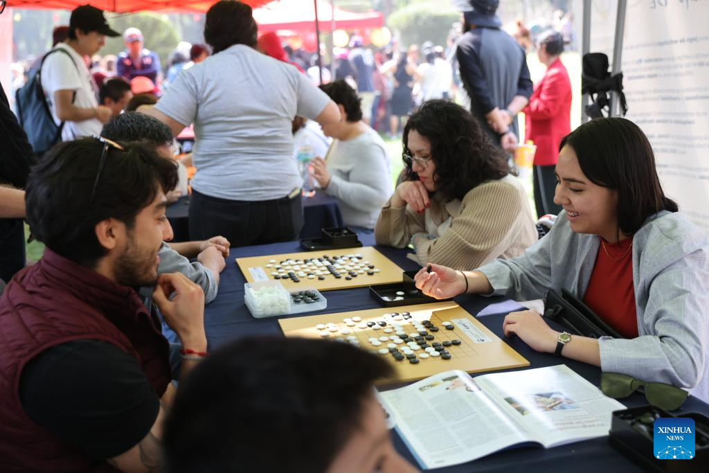 People play the game of Go at the 4th edition of the Chinese New Year cultural festival at the National Arts Center in Mexico City, capital of Mexico, Jan. 25, 2025. The cultural festival kicked off here Saturday to celebrate the upcoming Spring Festival, or the Chinese Lunar New Year. (Xinhua/Li Mengxin)