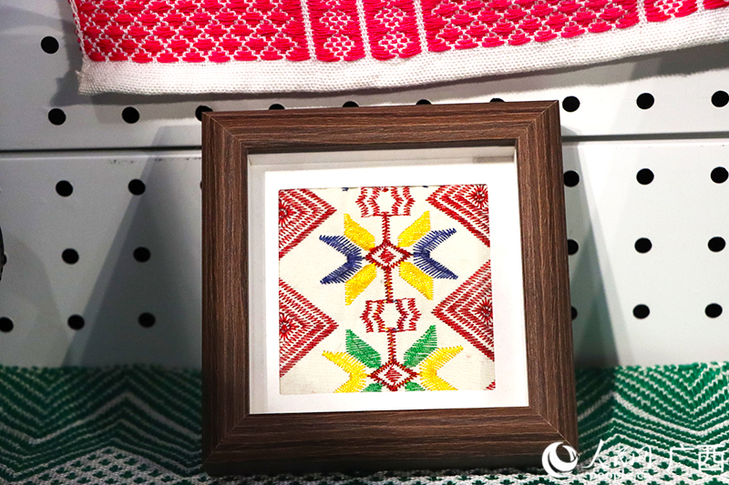 Photo shows Zhuang brocade products on display at the handicraft cooperative named after Li Suying in Longzhou county, south China's Guangxi Zhuang Autonomous Region. (People's Daily Online/Wei Huan)