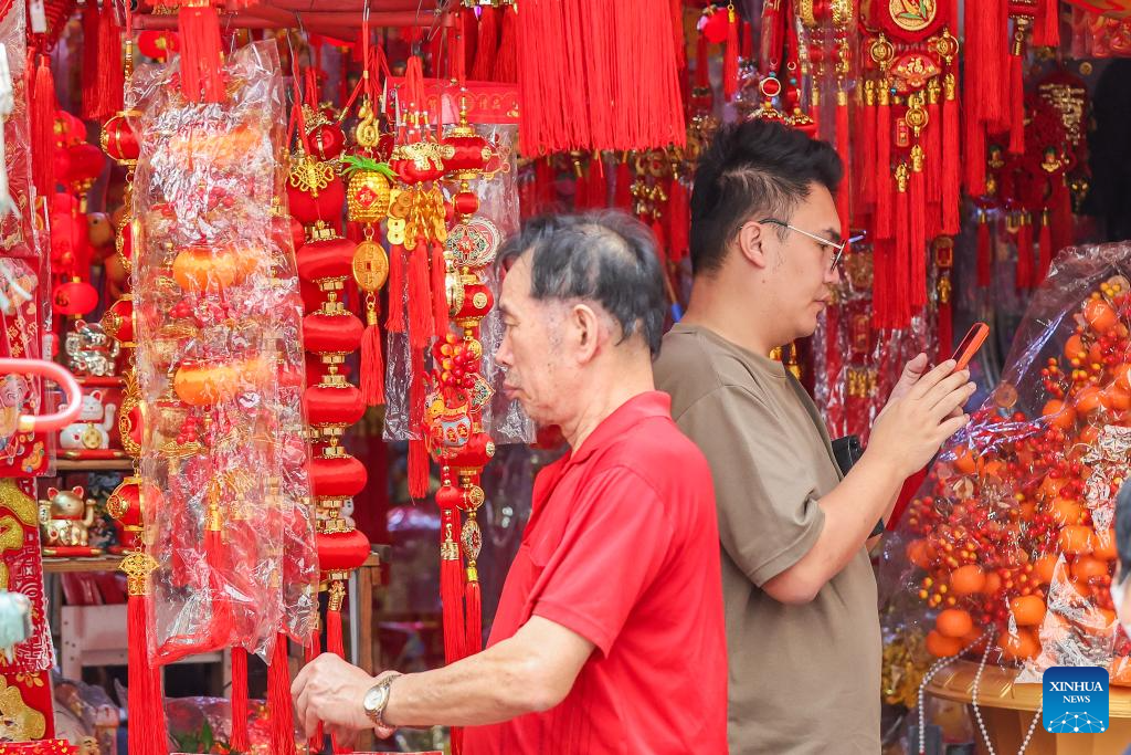 People select the Spring Festival decorations at a store in Chinatown in Manila, the Philippines, Jan. 27, 2025. The Spring Festival, or the Chinese New Year, falls on Jan. 29 this year. (Xinhua/Rouelle Umali)