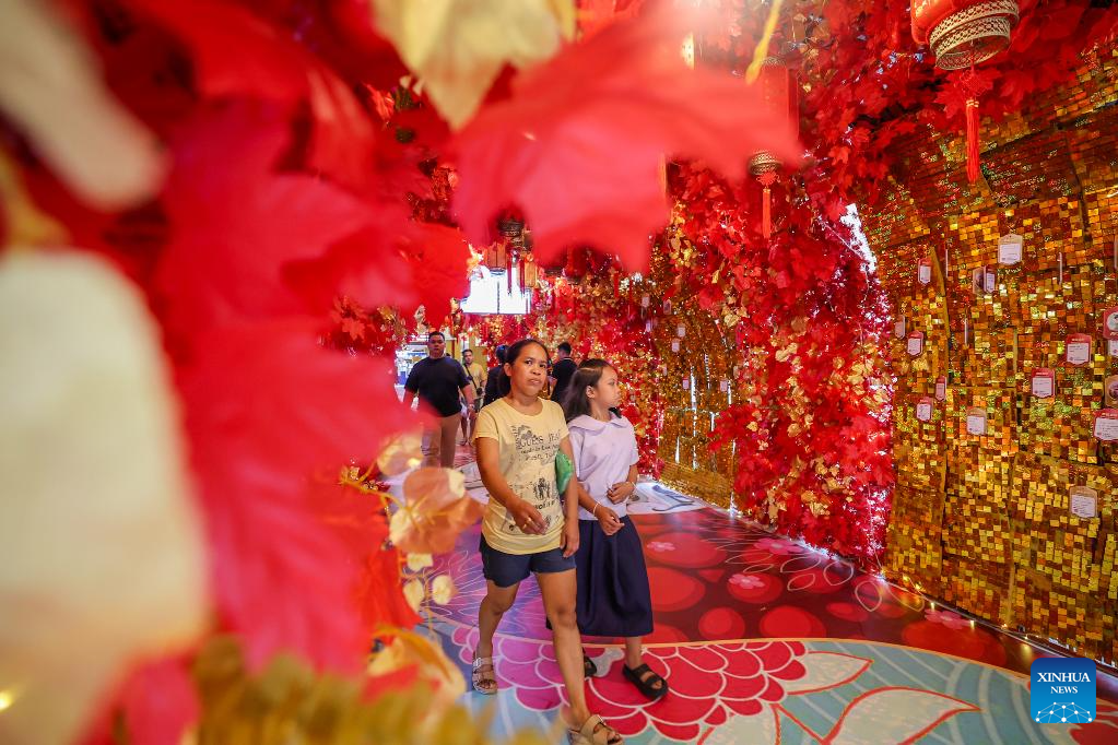 People walk through a hallway full of Spring Festival decorations at a mall in Chinatown in Manila, the Philippines, on Jan. 27, 2025. The Spring Festival, or the Chinese New Year, falls on Jan. 29 this year. (Xinhua/Rouelle Umali)