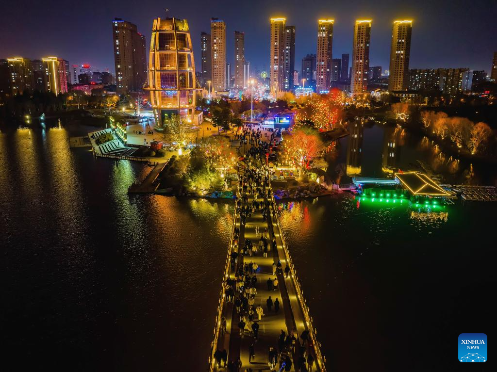 People visit the Xishuanghu national wetland park in Donghai County, east China's Jiangsu Province, Jan. 30, 2025. People enjoy various activities to celebrate the Chinese New Year which falls on Jan. 29 this year. (Photo by Shao Guangming/Xinhua)