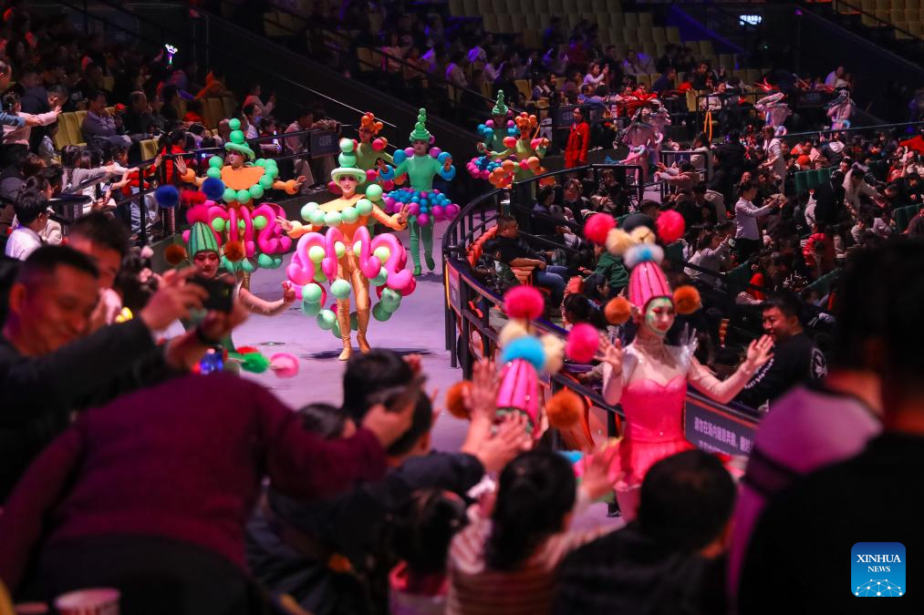 Tourists enjoy an artistic performance in Changxing County, Huzhou of east China's Zhejiang Province, Jan. 30, 2025. People enjoy various activities to celebrate the Chinese New Year which falls on Jan. 29 this year. (Photo by Zhang Ying/Xinhua)