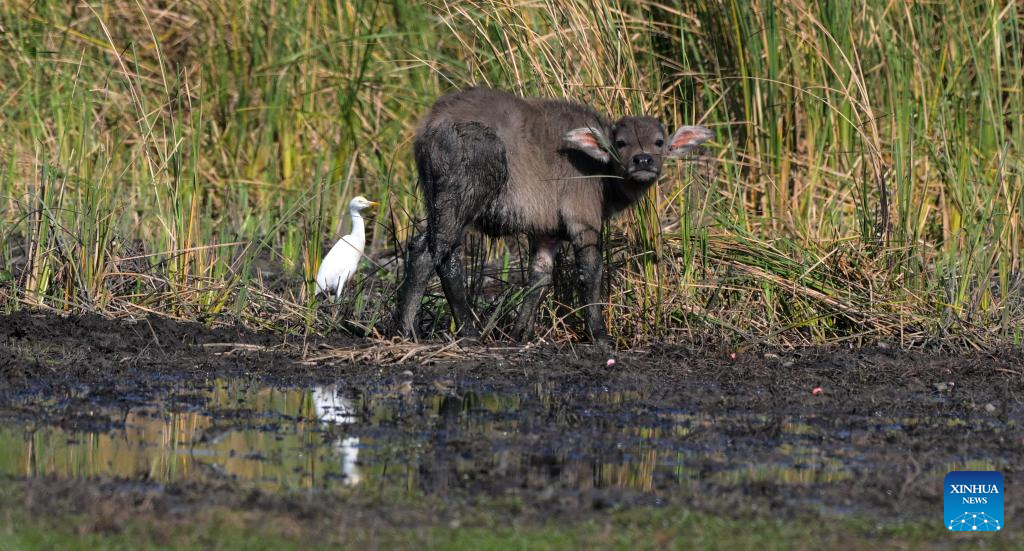 A egret is pictured at Haiwei wetland in Changjiang Li Autonomous County, south China's Hainan Province, Jan. 24, 2025. As one of the few coastal freshwater swamp wetlands in Hainan Island, the ecosystem and biodiversity of Haiwei wetland are being effectively protected, and it has become an important habitat for migratory birds on the west coast of Hainan Island. (Xinhua/Yang Guanyu)