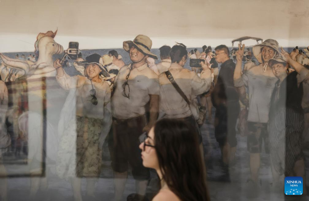 A man visits an exhibition of Chinese contemporary artworks at the National Gallery of Modern and Contemporary Art in Rome, Italy, Feb. 2, 2025. (Xinhua/Li Jing)