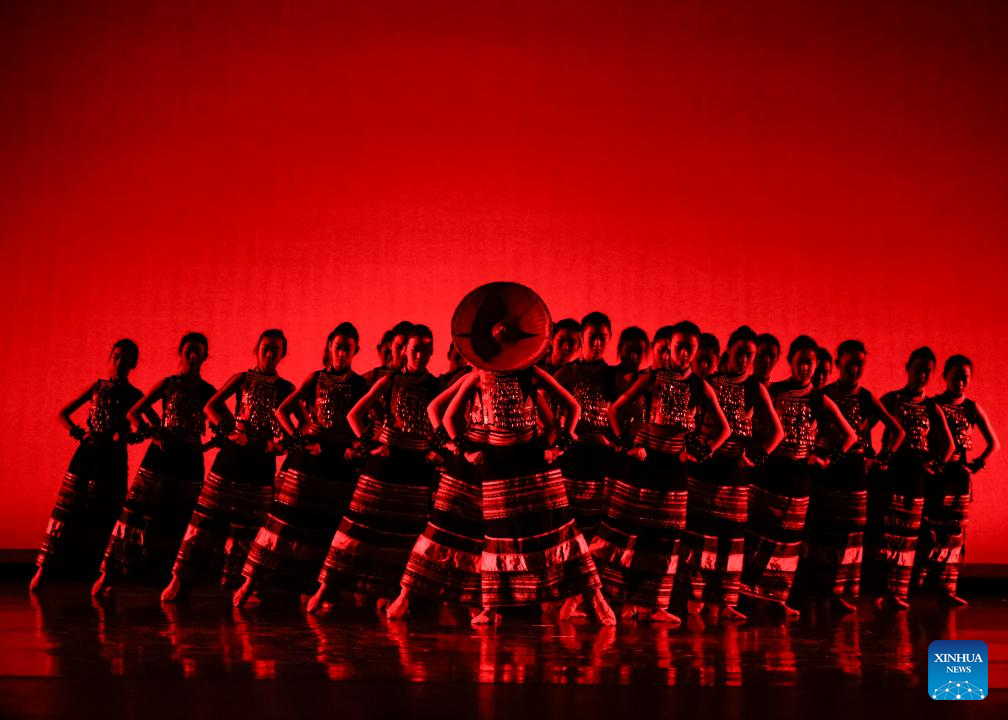 Students from the art troupe of the High School Affiliated to Renmin University of China perform during the Chinese New Year Showcase in Chicago, the United States, Feb. 1, 2025. (Photo by Joe Lerner/Xinhua)
