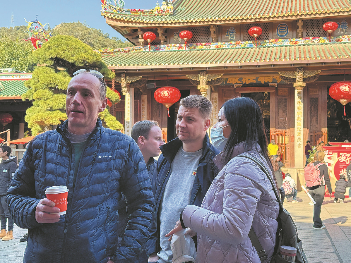 The South Putuo Temple in Xiamen, Fujian province, attracts foreign tourists on Jan 12. (Du Lianyi/China Daily)