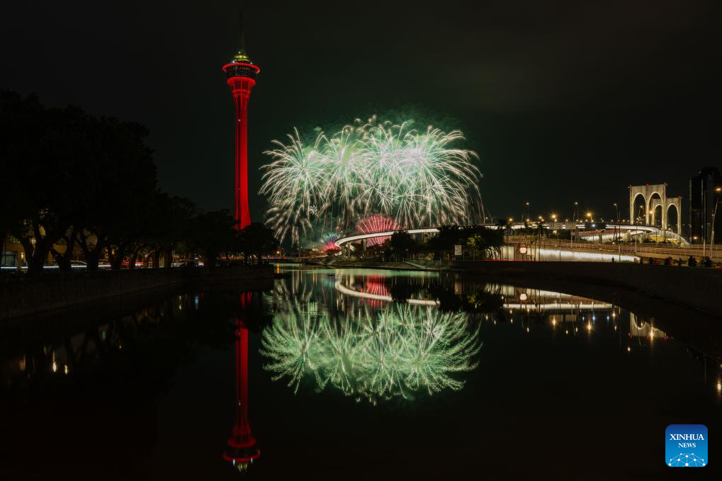 Fireworks in celebration of the Spring Festival illuminate the sky in Macao, south China, Feb. 4, 2025. (Xinhua/Cheong Kam Ka)