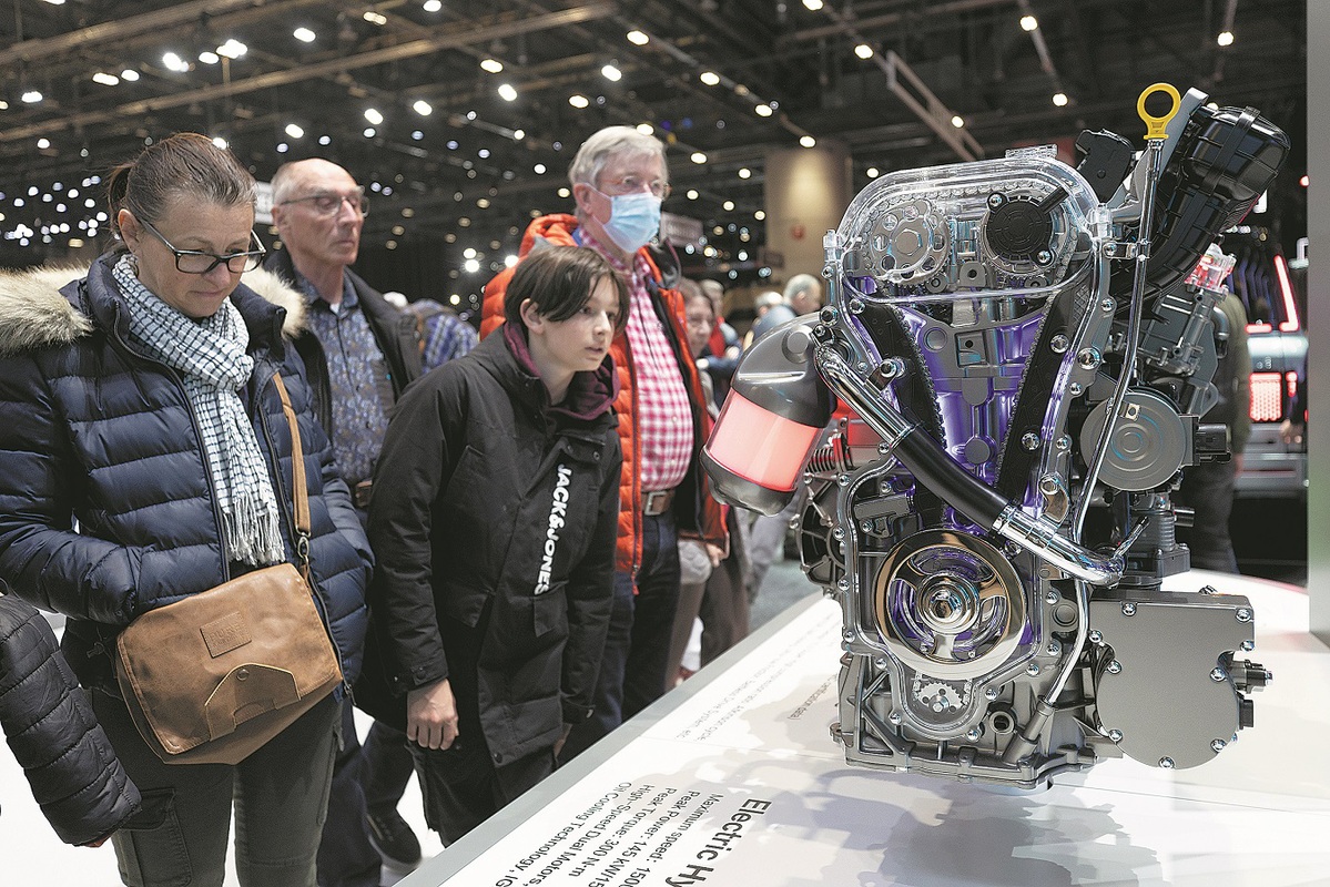 People visit the booth of Chinese carmaker Leapmotor at the 2024 Paris Motor Show in Paris on Oct 14. (Gao Jing/Xinhua)