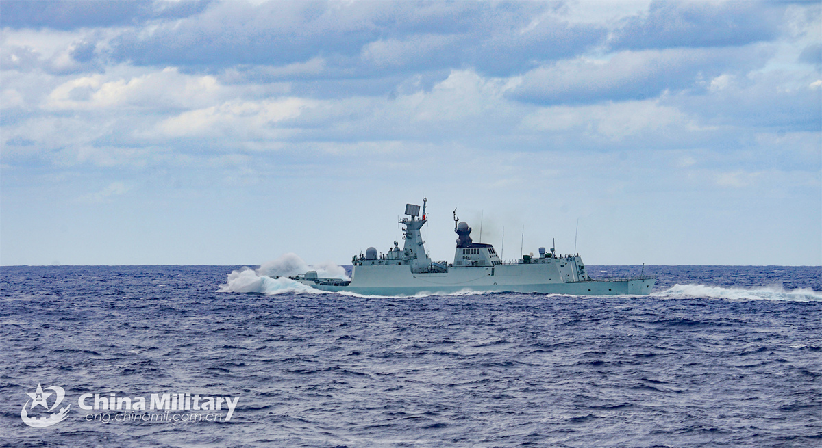 A naval frigate attached to the Chinese PLA Eastern Theater Command sails towards the designated waters during a live-fire training exercise on December 21, 2024. (eng.chinamil.com.cn/Photo by Liu Jia)