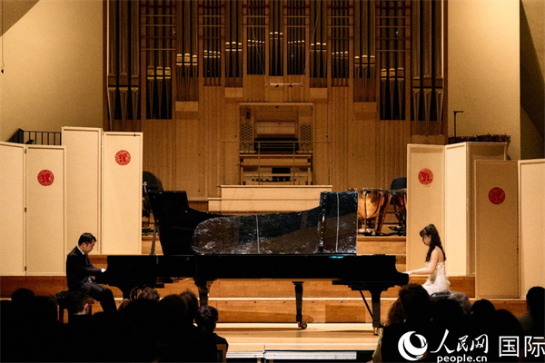 Pianists Li Jinfeng and Guo Xinyi perform a double piano battle, "When Sherlock Meets the Pearl River." (Photo/Yang Haopeng )