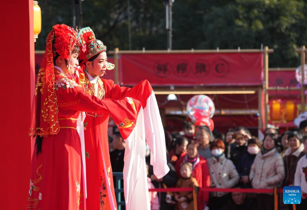 Villagers enjoy Shaoxing Opera performance in Lianzeng Village of Shaoxing City, east China's Zhejiang Province, Jan. 25, 2025. Shaoxing opera, also known as Yue opera, emerged in the early 1900s in east China's Zhejiang Province. Around the Spring Festival, opera troupes are busy performing at theaters, cultural halls, and temple fairs, creating a vibrant and festive atmosphere.