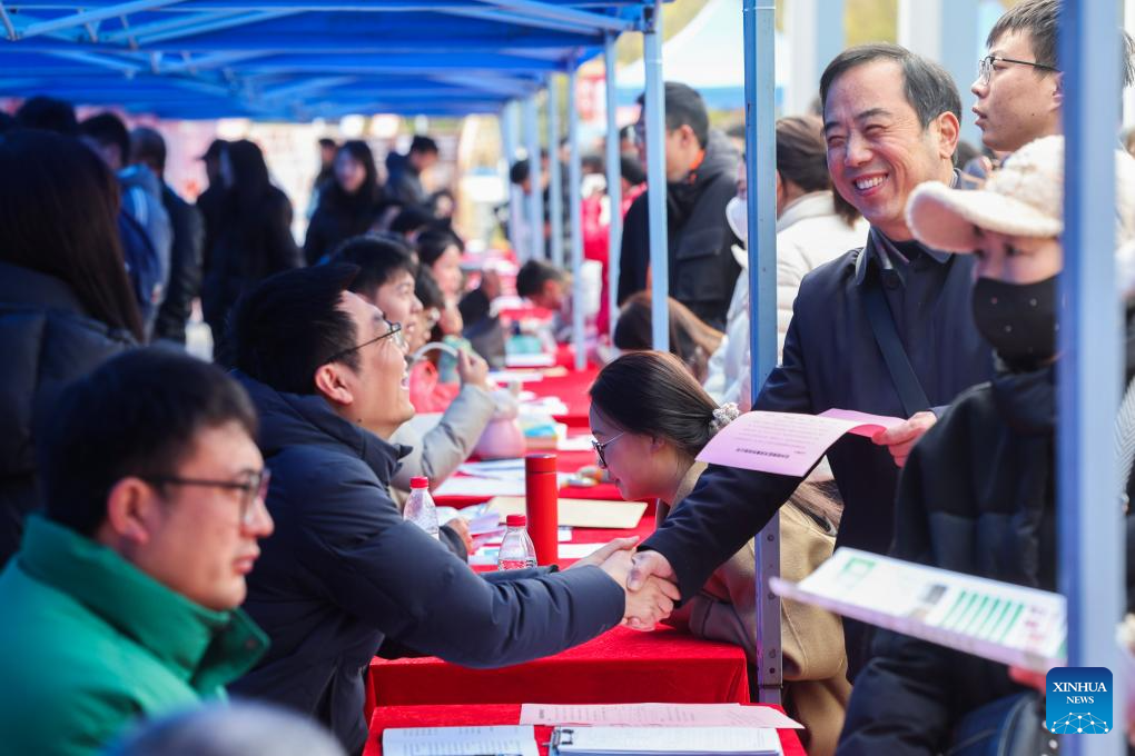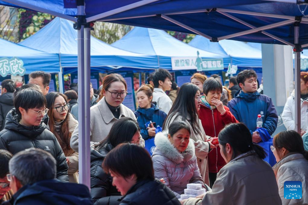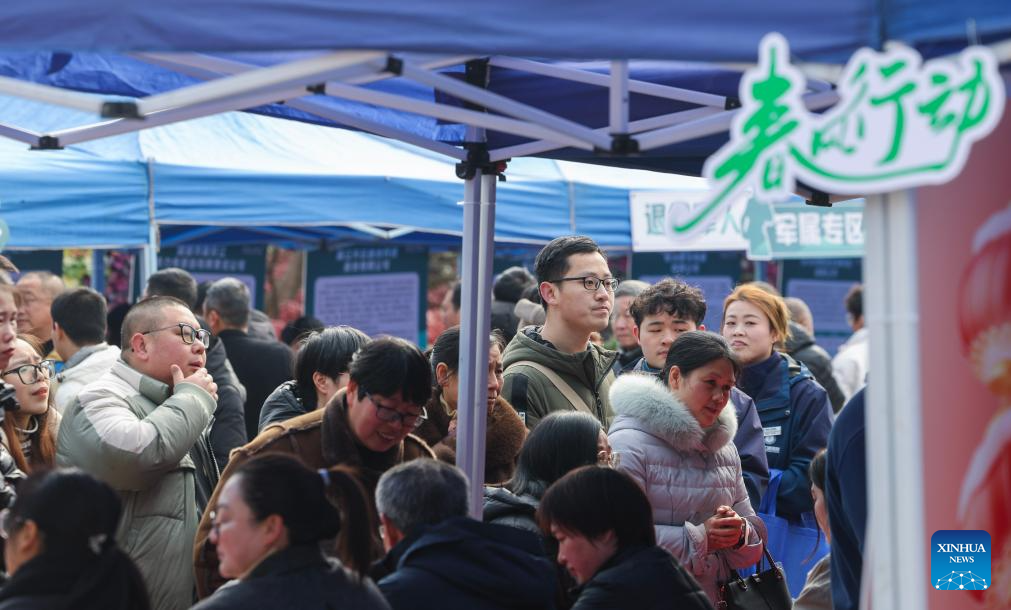 Jobseekers attend a job fair held in Jiande City, east China's Zhejiang Province, Feb. 6, 2025. A job fair was held here on Thursday. Over 120 enterprises from a variety of industries such as new energy, new materials, intelligent manufacturing and biomedicine participated in the job fair, providing more than 3,000 jobs. (Xinhua/Xu Yu)