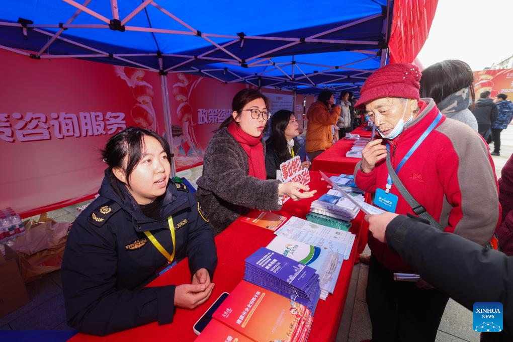 Staff members from local labor and social security department provide consultation on relevant regulations to job seekers at a job fair held in Jiande City, east China's Zhejiang Province, Feb. 6, 2025. A job fair was held here on Thursday. Over 120 enterprises from a variety of industries such as new energy, new materials, intelligent manufacturing and biomedicine participated in the job fair, providing more than 3,000 jobs. (Xinhua/Xu Yu)
