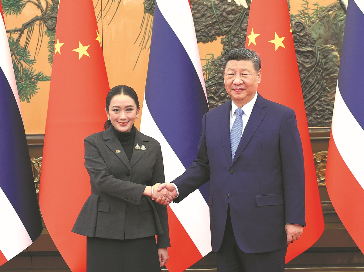 President Xi Jinping meets on Thursday with Prime Minister of Thailand Paetongtarn Shinawatra, who is making an official visit to China, at the Great Hall of the People in Beijing. (Wang Zhuangfei/China Daily)